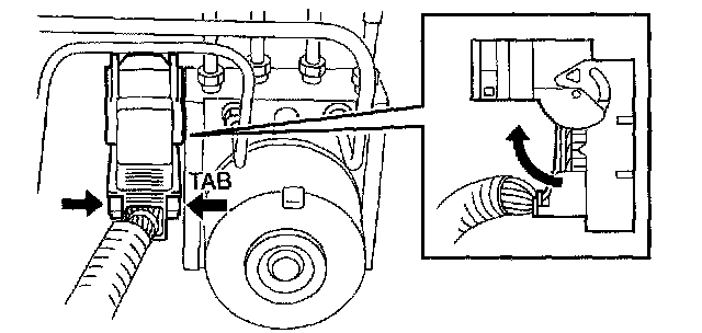 1. Pull the connector cover up in the direction of the arrow while pressing the tab of the connector cover.