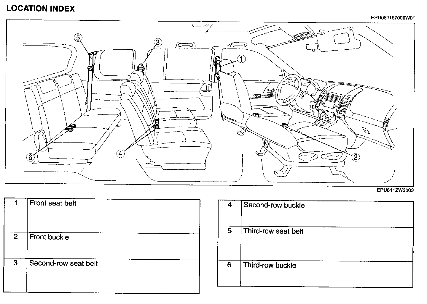 Seat Belt Location Index: