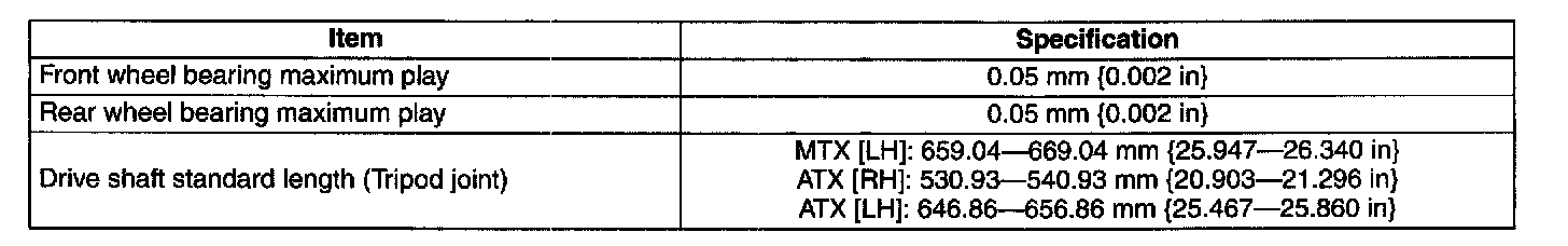DRIVELINE/AXLE TECHNICAL DATA: