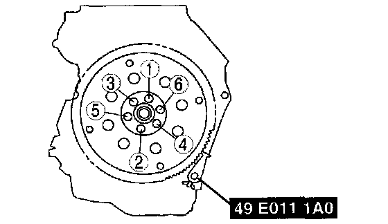 Tighten the drive plate mounting bolls in two or three steps in the order as shown in the figure.