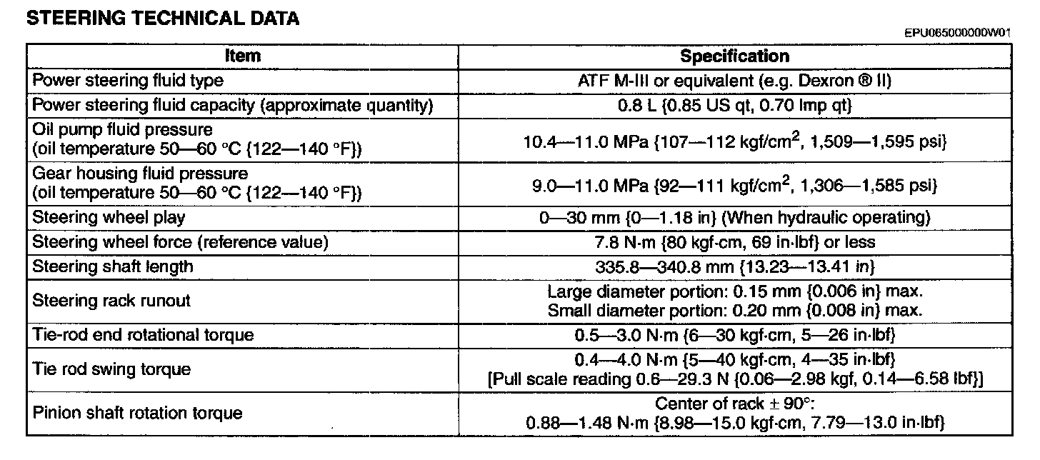 STEERING TECHNICAL DATA: