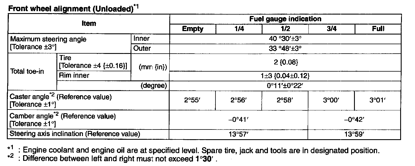 FRONT WHEEL ALIGNMENTFront wheel alignment (Unloaded)*l: