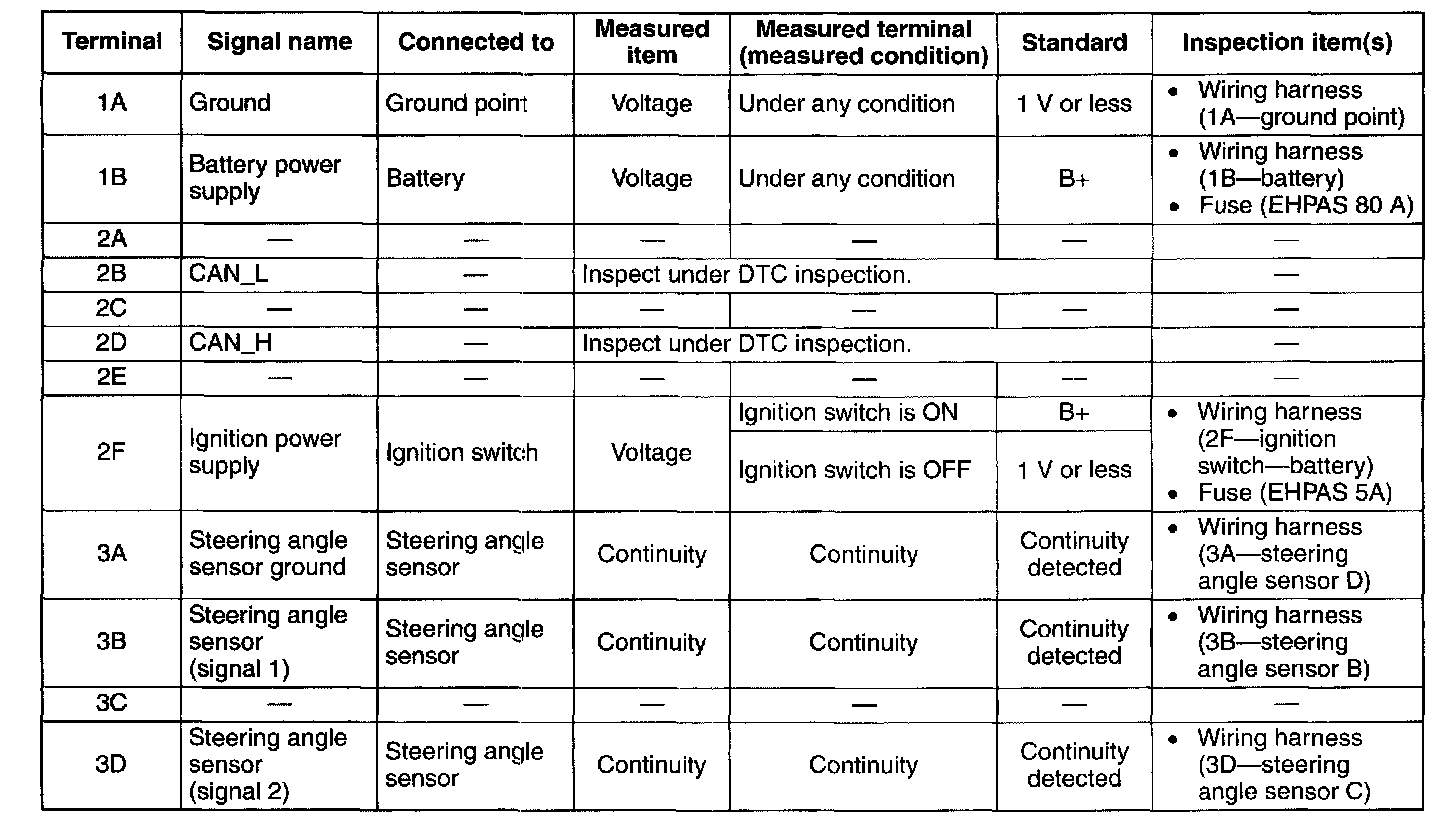 ELECTRO HYDRAULIC POWER ASSIST STEERING (EHPAS) CONTROL MODULE INSPECTION