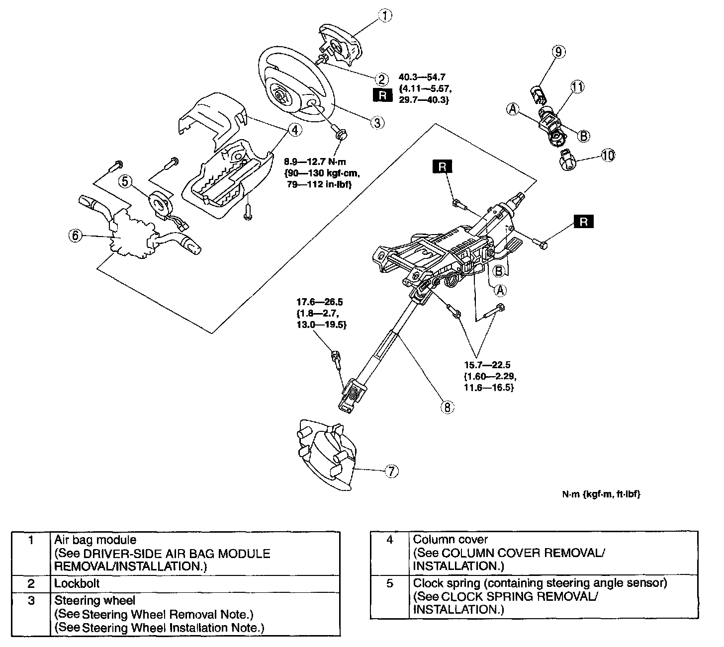 STEERING WHEEL AND COLUMN REMOVAL AND INSTALLATIONWarning: Handling the air bag module improperly can accidentally operate (deploy) the air bag module, which may seriously injure you. Read the service warnings before handling the air bag module.