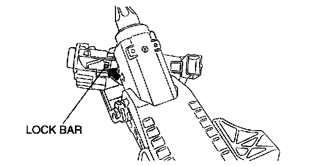 2. Insert a pin from the position indicated by the arrow in the figure, and while pressing the lock bar with the pin, remove the key cylinder from the steering lock component.