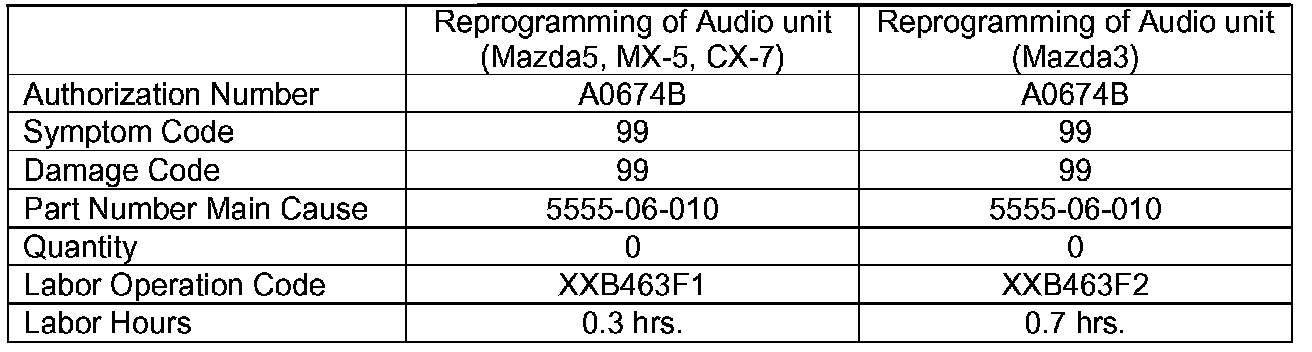 CONDITION OF CONCERNCertain vehicles equipped with Clarion audio and Sirius satellite receiver were unable to receive the Sirius satellite radio broadcasting from September 26, 2006 through October 11, 2006 due to a software issue in the audio unit. Currently the audio unit can receive the satellite radio broadcasting normally; however, after January 1st, 2007, the same failure may occur unless the Clarion audio units have been re-flashed with corrected software.