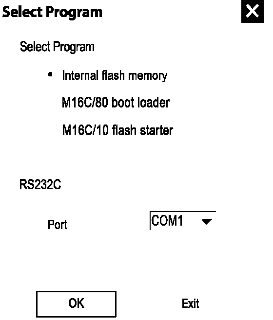 17. Click "OK" on the "M16C Flash Start - Program OK" window then "Exit" on the "M16C Flash Start" window to terminate the reflash program.