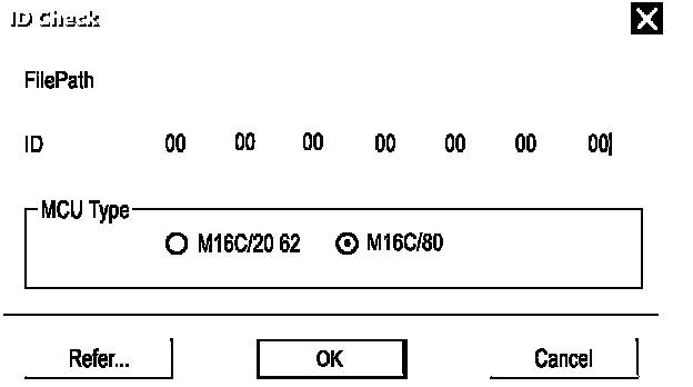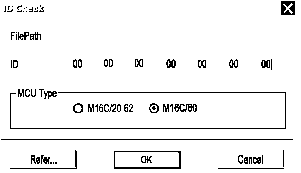 11. After entering all the information as specified, click "OK" on the "ID Check" window. The "M16C Flash Start" window will be displayed.
