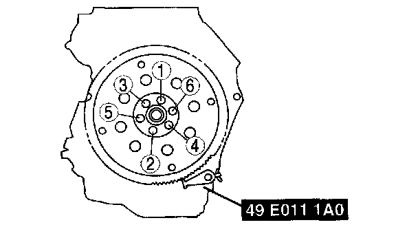 5. Tighten the drive plate mounting bolls in two or three steps in the order as shown in the figure.