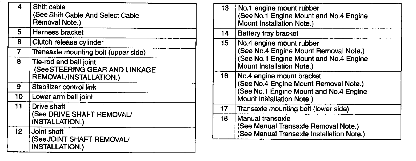 Manual Transaxle Removal Note