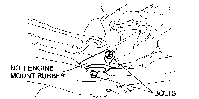 3. Install the No. 1 engine mount rubber to the cross member and temporarily tighten bolts.