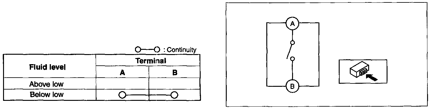 3. Inspect for continuity between the washer fluid-level sensor terminals using an ohmmeter.