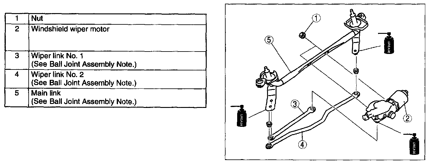 WINDSHIELD WIPER MOTOR DISASSEMBLY/ASSEMBLY1. Disassemble in the order indicated in the table.