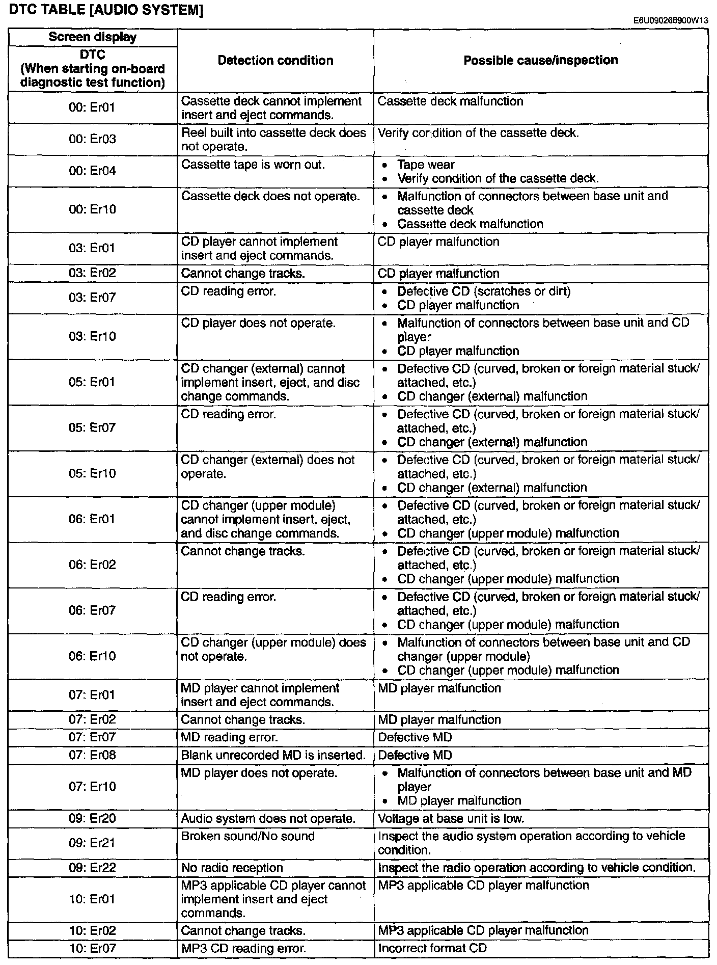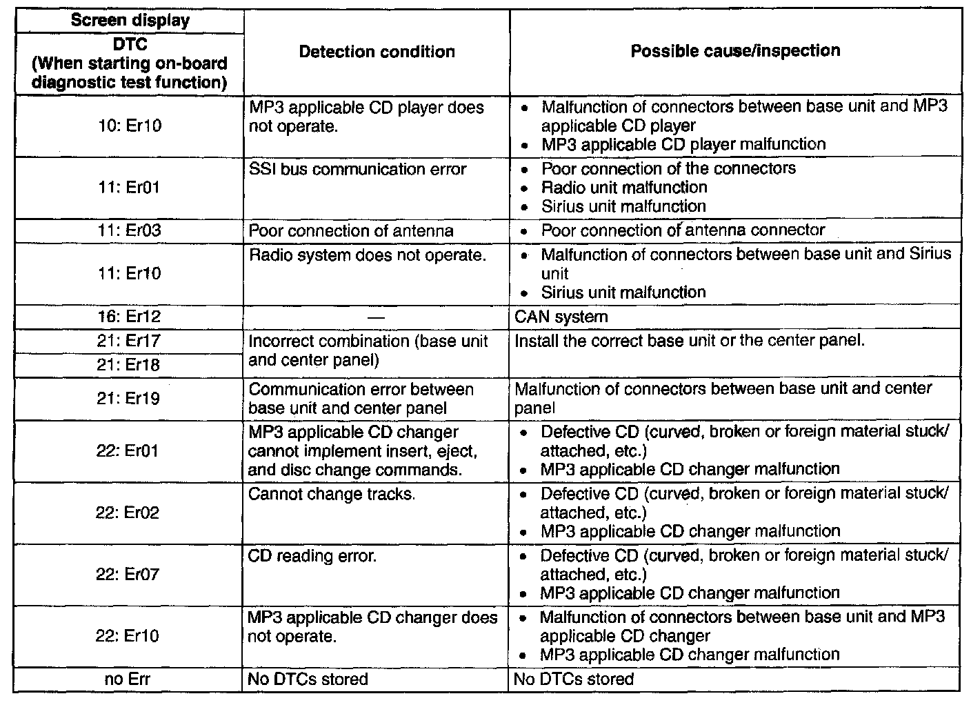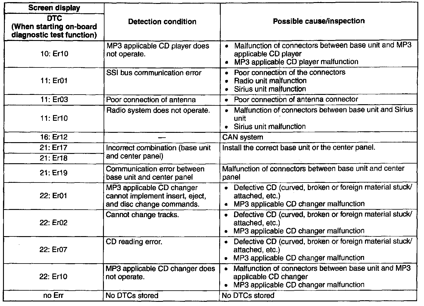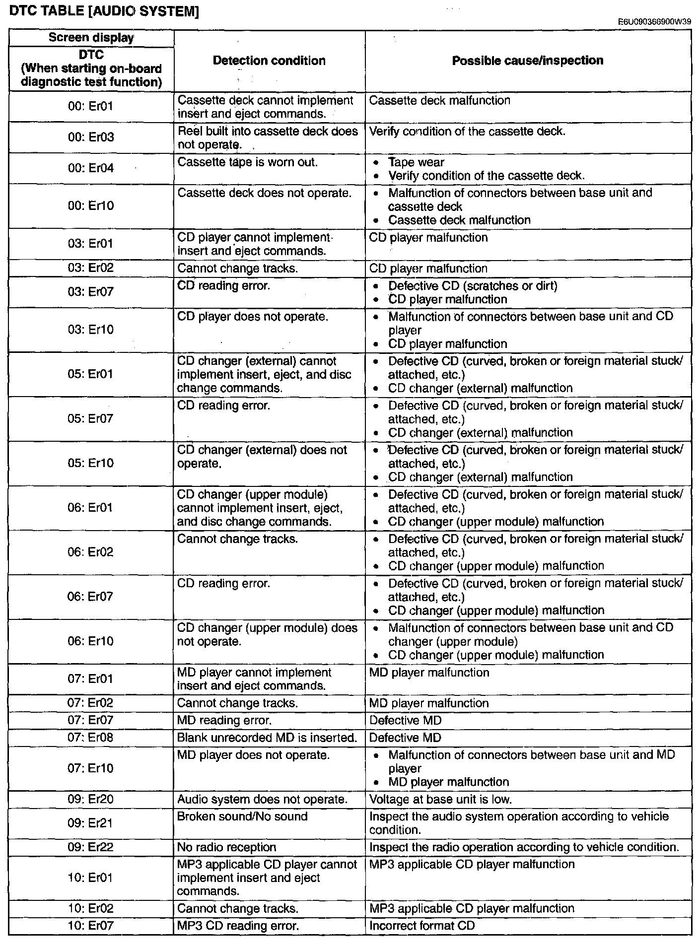 DTC 00:Er01-10:Er07: