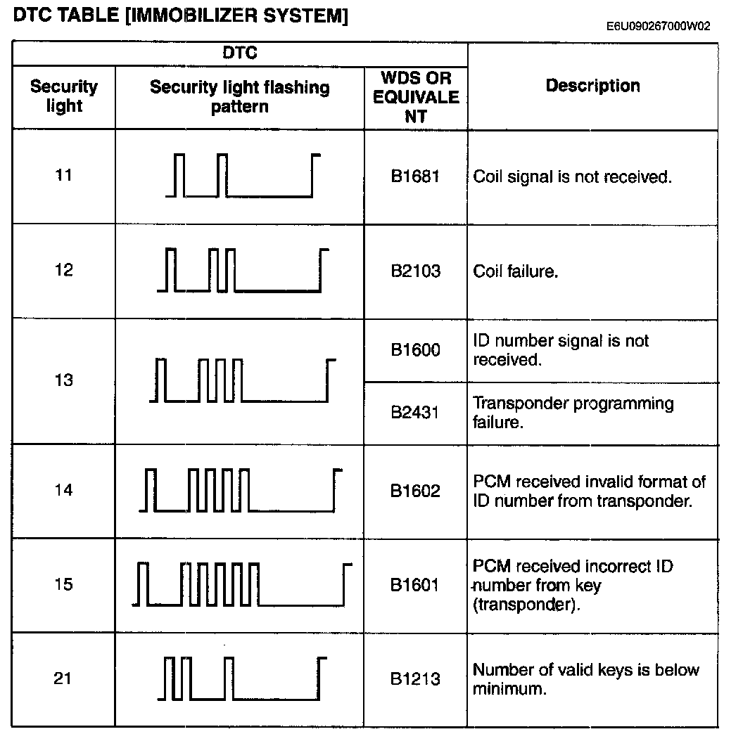 DTC TABLE [IMMOBILIZER SYSTEM]DTC 11-21: