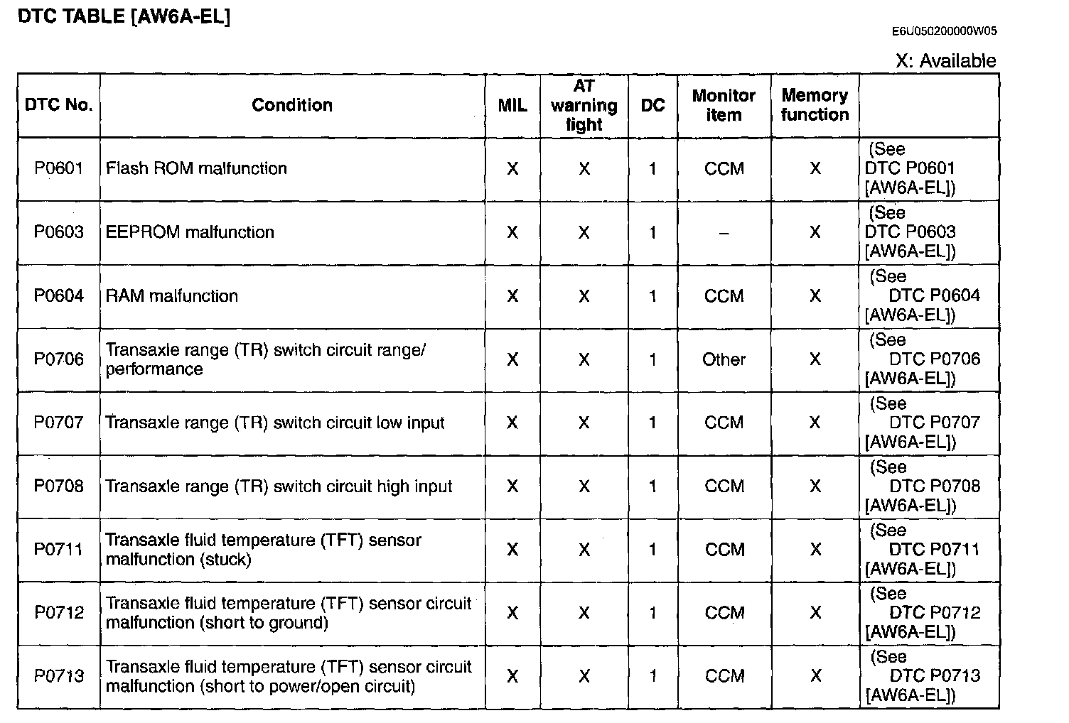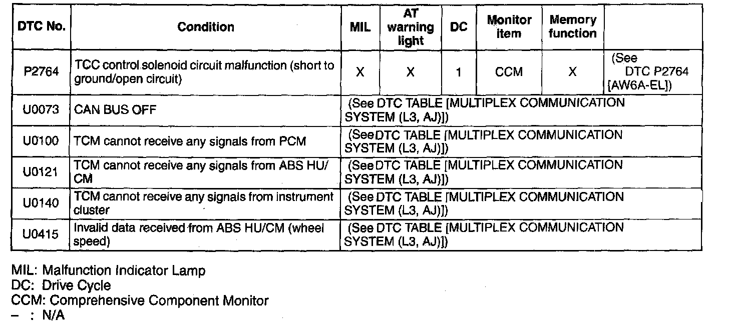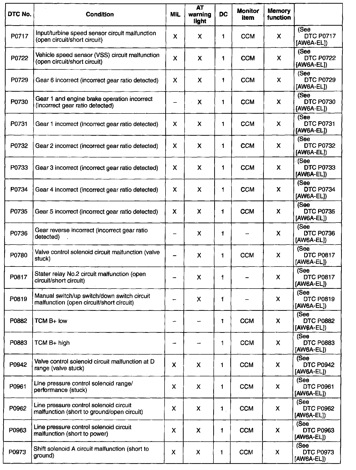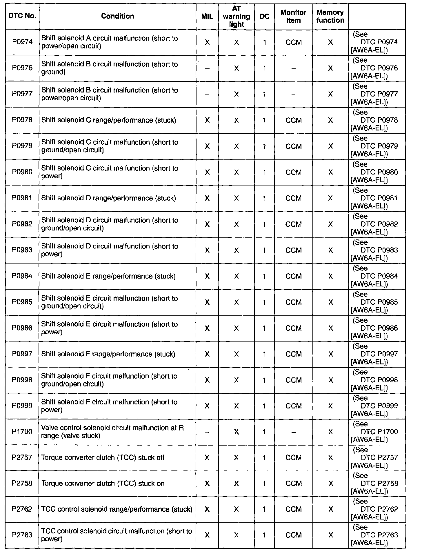 DTC TABLE [AW6A-EL]