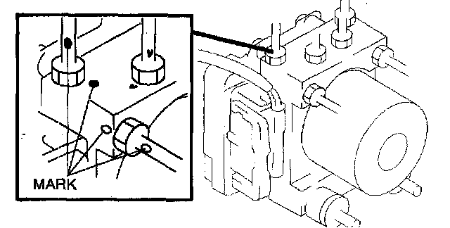 1. When installing the brake pipe, align the marks made before removal with the ABS/TCS HU/CM as shown in the figure.