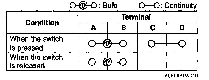 Inspect for continuity between the DSC OFF switch terminals using an ohmmeter.