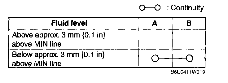 ^ If not as specified, replace the fluid level sensor.