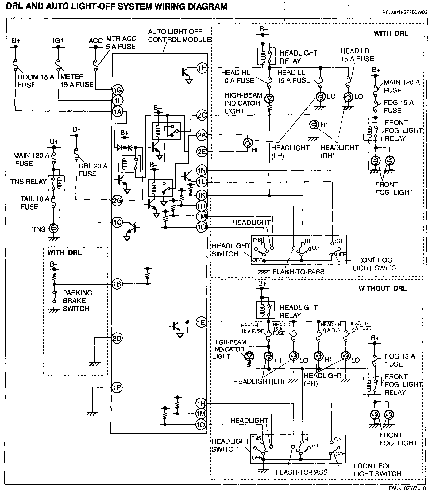 DRL And Auto Light-off System Wiring Diagram:
