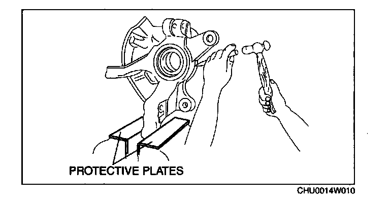When using a vise, put protective plates in the jaws of the vise to prevent damage to parts.