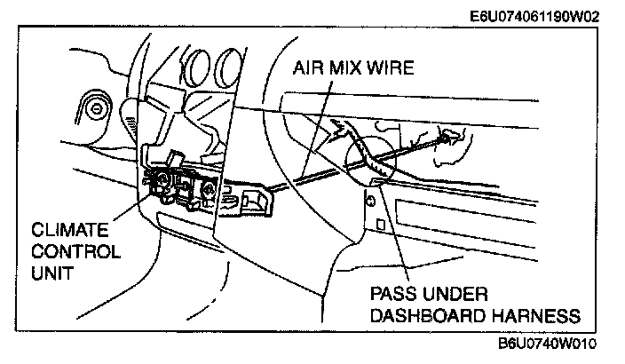 1. Pass air mix wire through the following routes then connect to A/C unit. (Manual air conditioner)