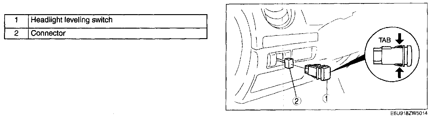 HEADLIGHT LEVELING SWITCH REMOVAL/INSTALLATION1. Disconnect the negative battery cable.