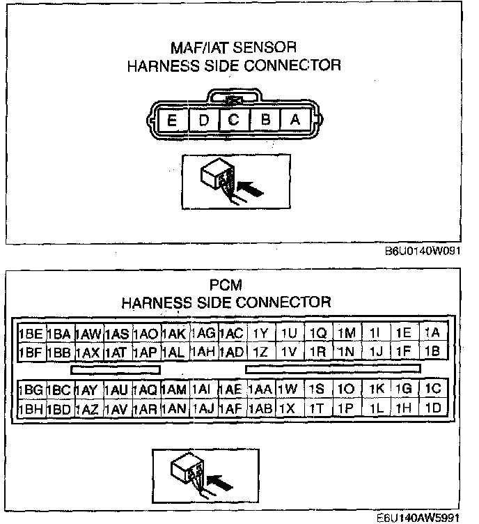 - MAF/IAT sensor terminal E and PCM terminal 1AR