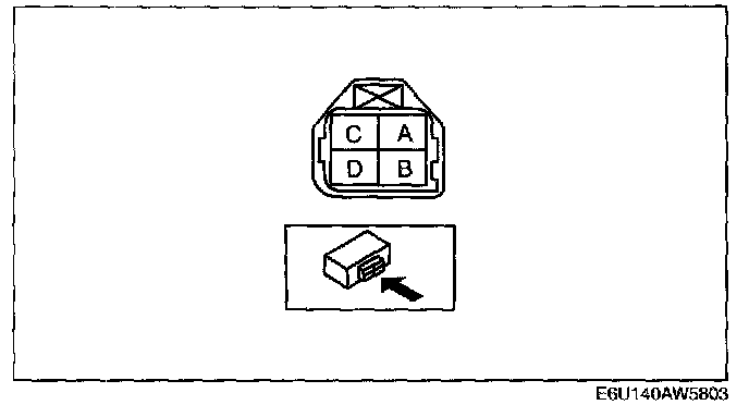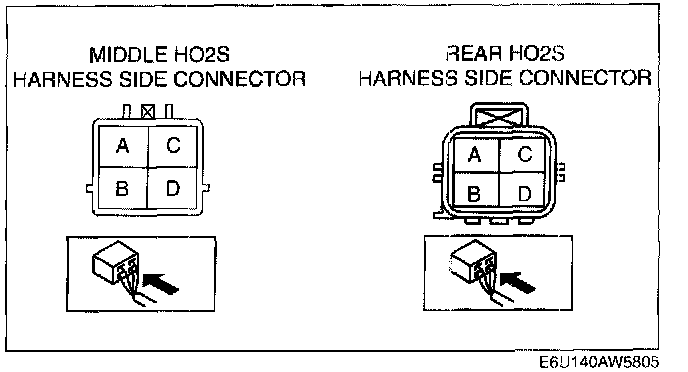 2. Measure the middle/rear HO2S resistance between terminals C and D.