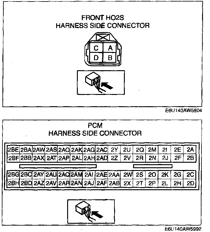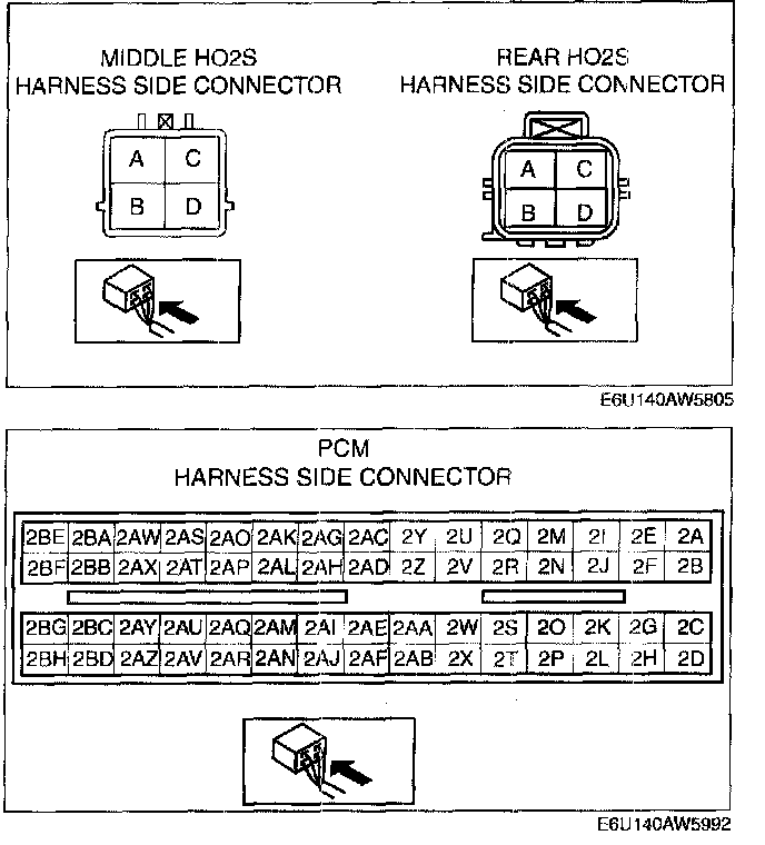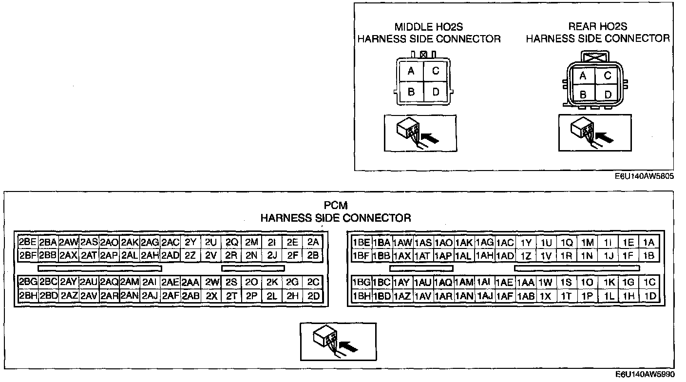 - Middle HO2S terminal B and PCM terminal 1 BG