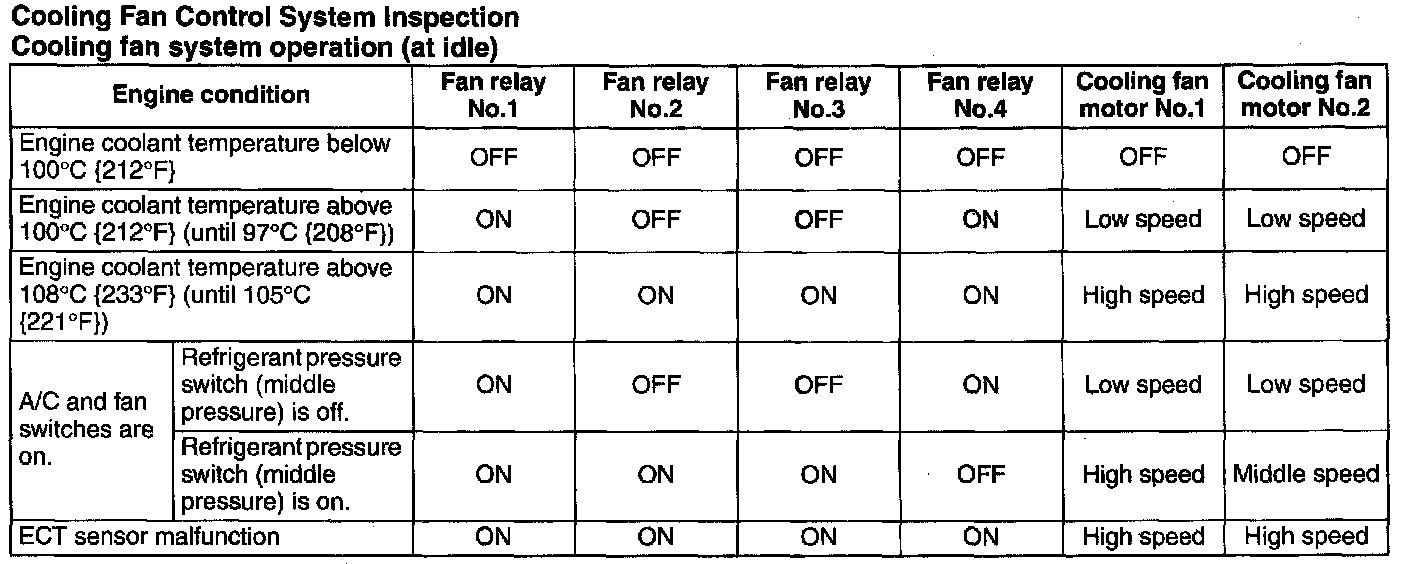 - If cooling fan No.1 does not operate and cooling fan No.2 is operating, inspect whether cooling fan relay No.3 is stuck in the closed.
