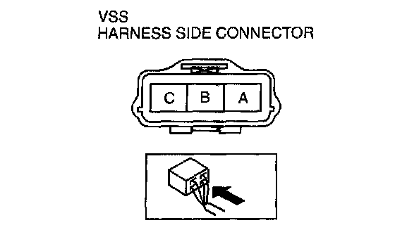 3. Measure voltage at VSS connector terminal B (wiring harness side).