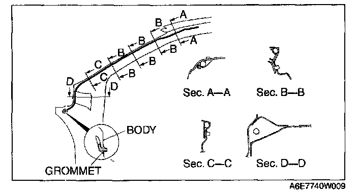 2. Sunroof seaming welt (vehicles with sunroof only)