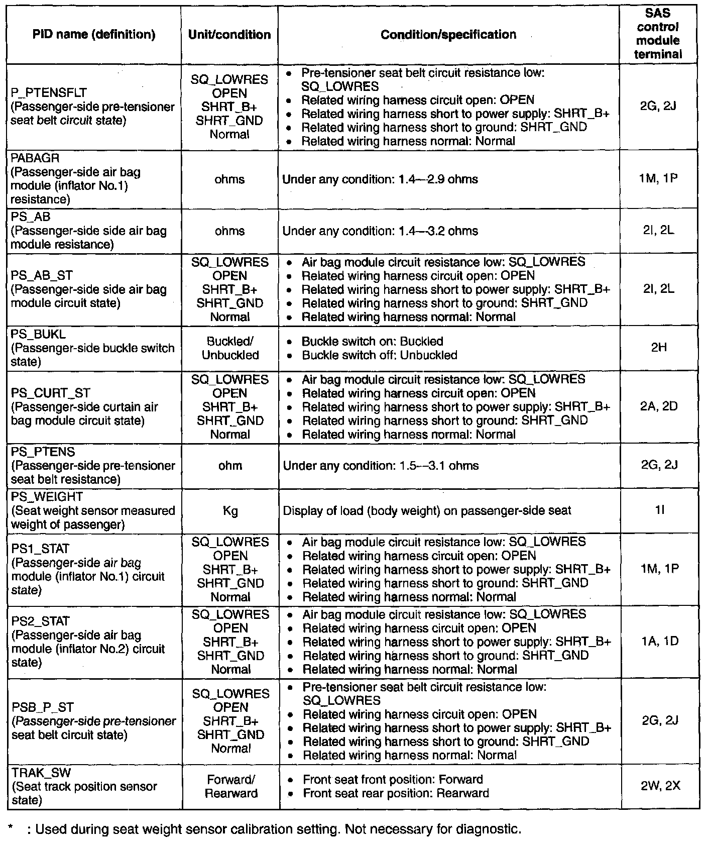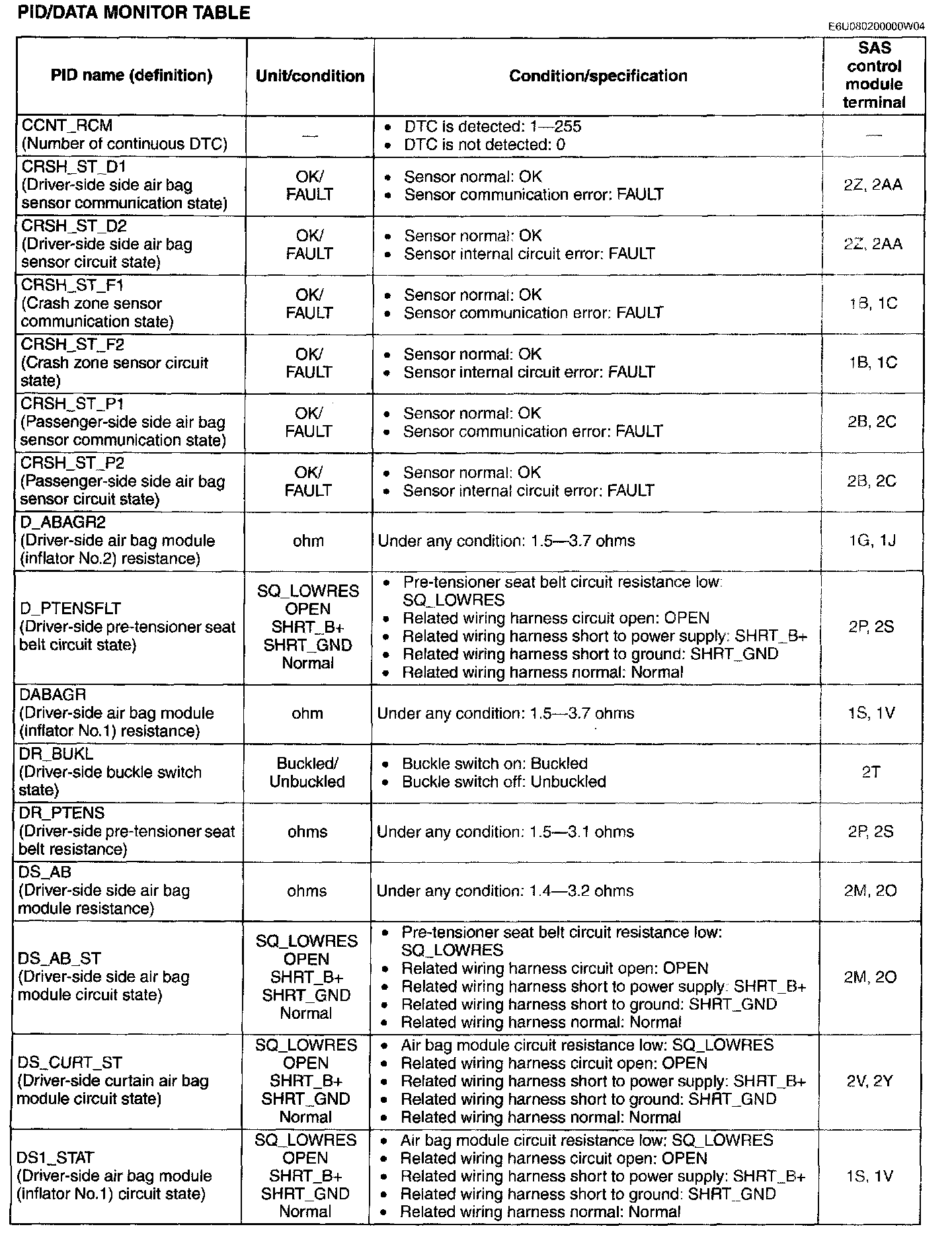 PID/Data Monitor Table (Part 3):