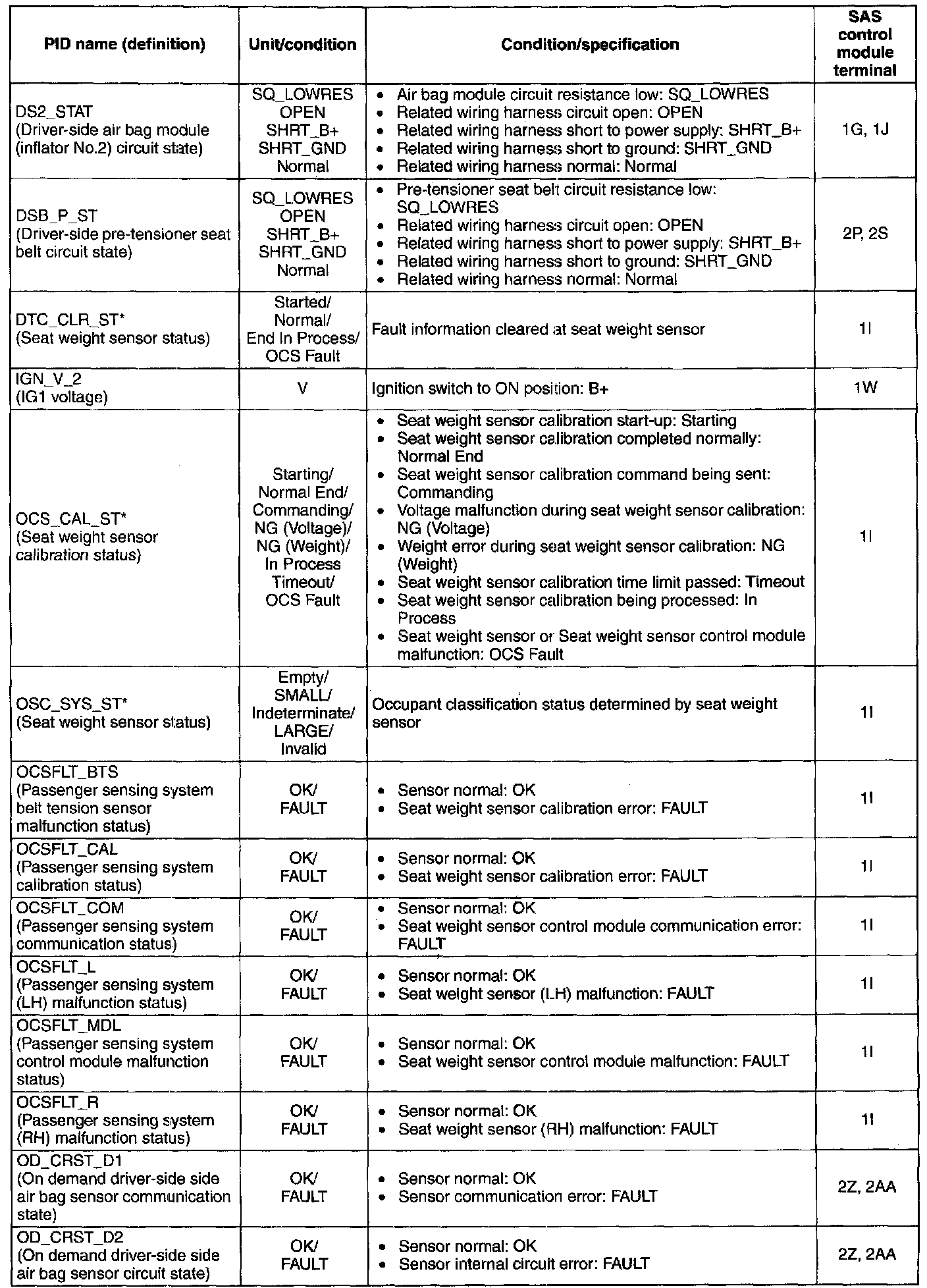 PID/Data Monitor Table (Part 1):