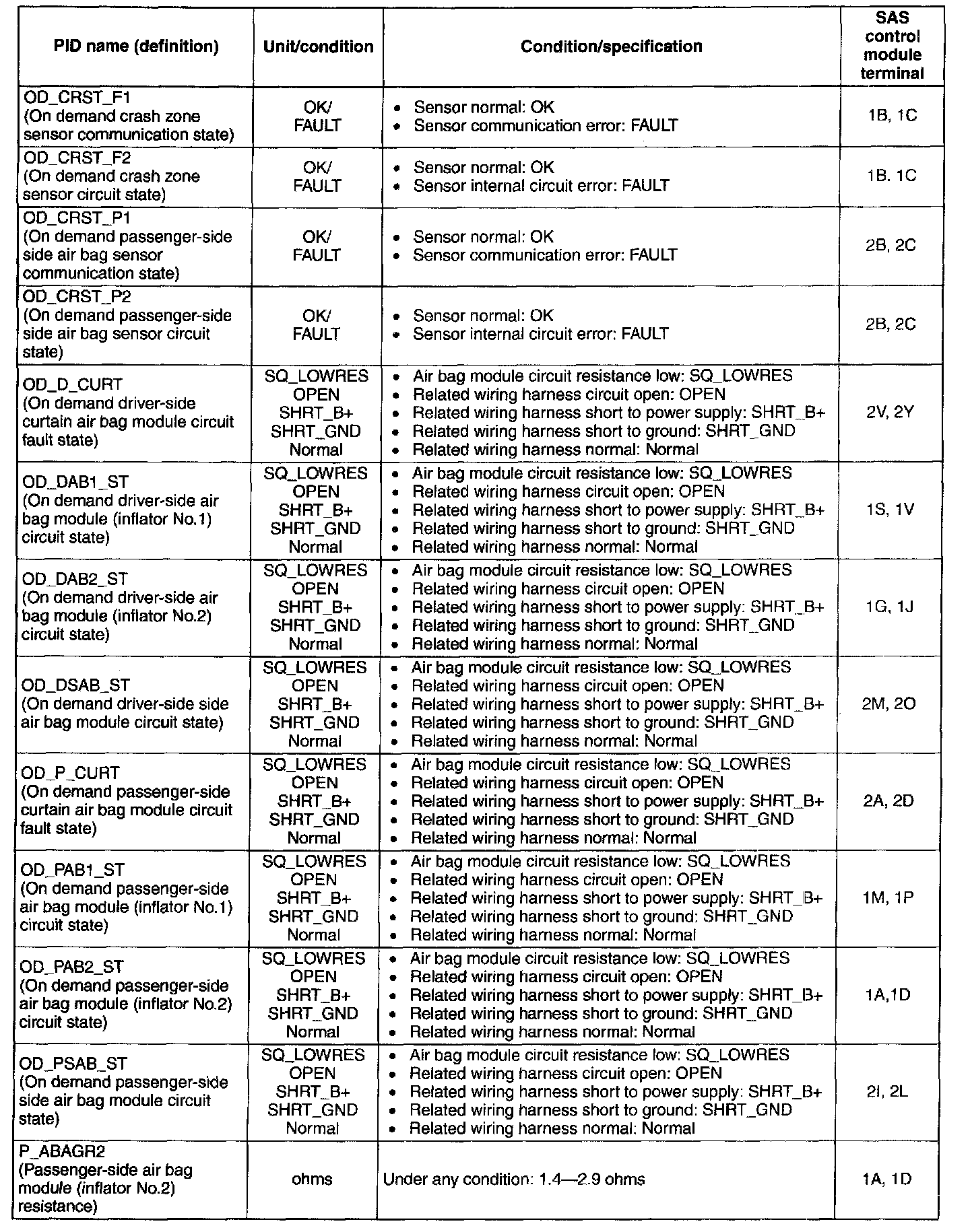 PID/Data Monitor Table (Part 2):