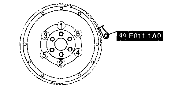 Gradually tighten the flywheel lock bolts in a crisscross pattern.