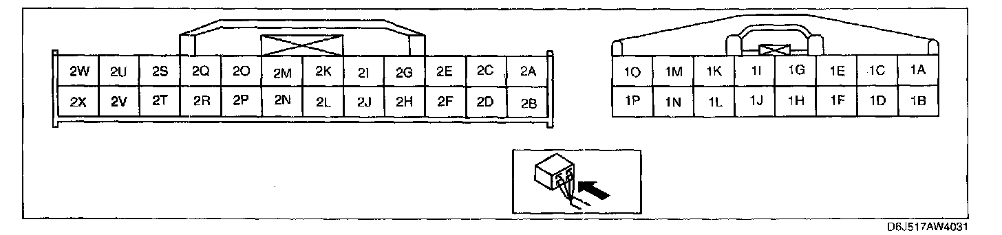 ^ Use the ground of terminal 10 and 1P of the TCM when measuring terminal voltage, as an error may occur when connecting the negative circuit tester to ground.