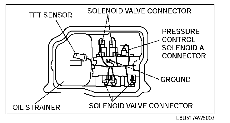 64. Match the harness colors, then connect the solenoid connector and TFT sensor.
