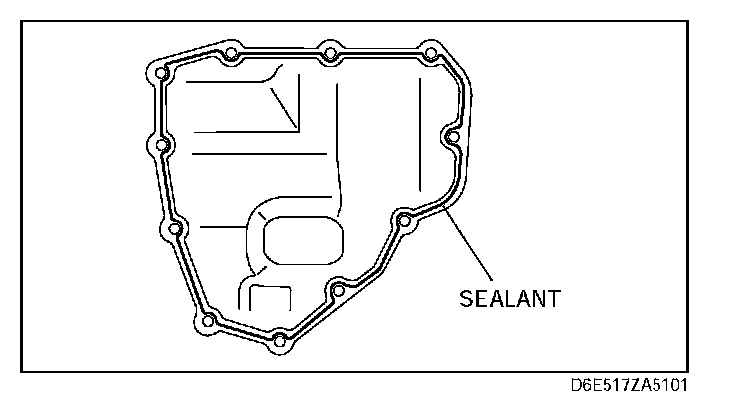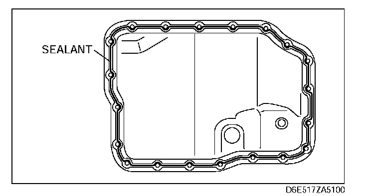 66. Apply a light coat of silicone sealant to the contact surfaces of oil pan and transaxle case.
