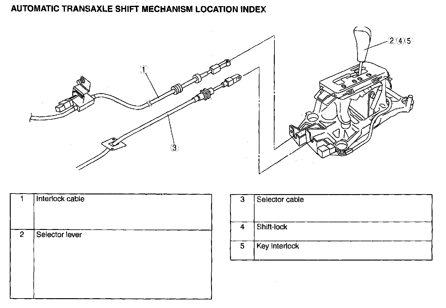 AUTOMATIC TRANSAXLE SHIFT MECHANISM LOCATION INDEX: