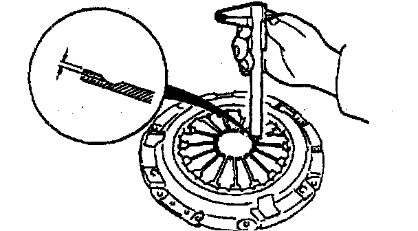 4. Rotate the flywheel and check for misaligned diaphragm spring fingers. If not as specified, replace the clutch cover.