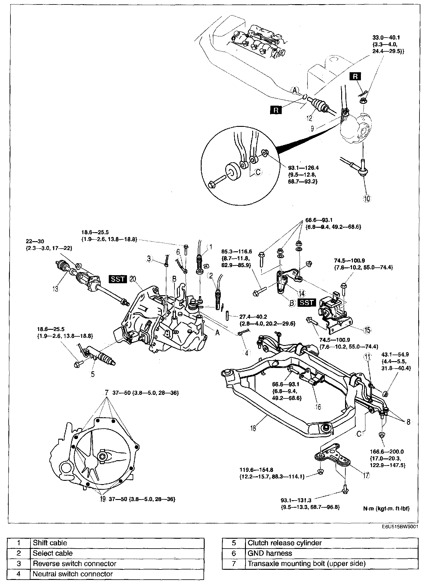 A, B, C, D: 74.5 - 100.9 Nm (7.6 - 10.2 kgf-m, 55.0 - 74.4 ft. lbs.)
