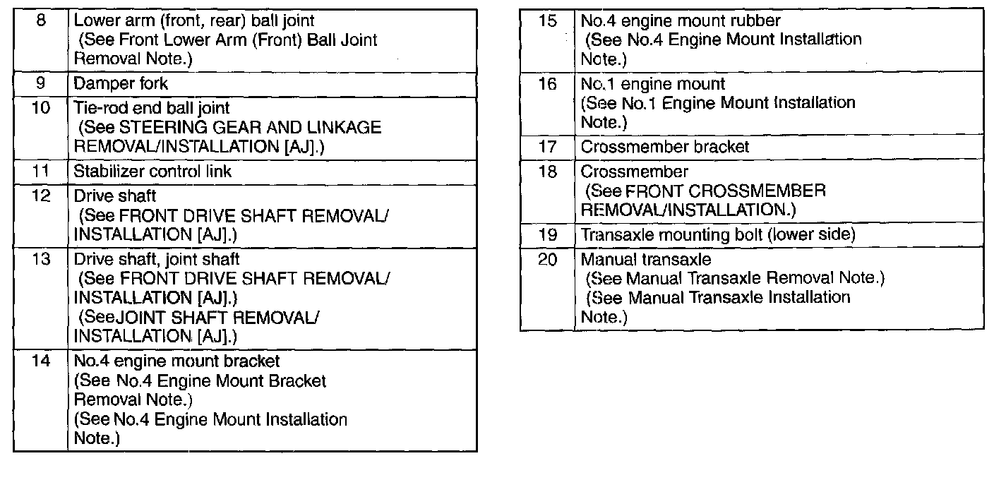 Manual Transaxle Removal Note