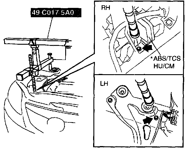 Caution: When setting the SST on the right side, make sure it doesn't interfere with the ABS/TCS HU/CM.