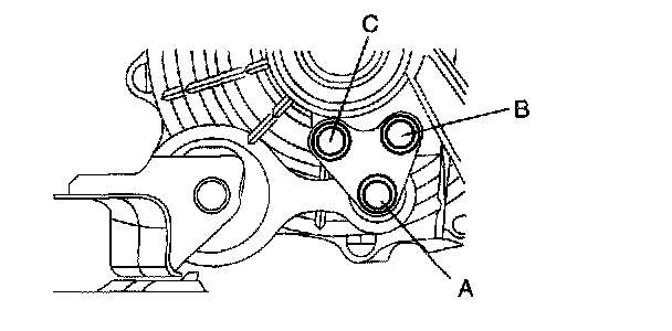 2. Lightly tighten bolt A, then tighten bolts B and C.