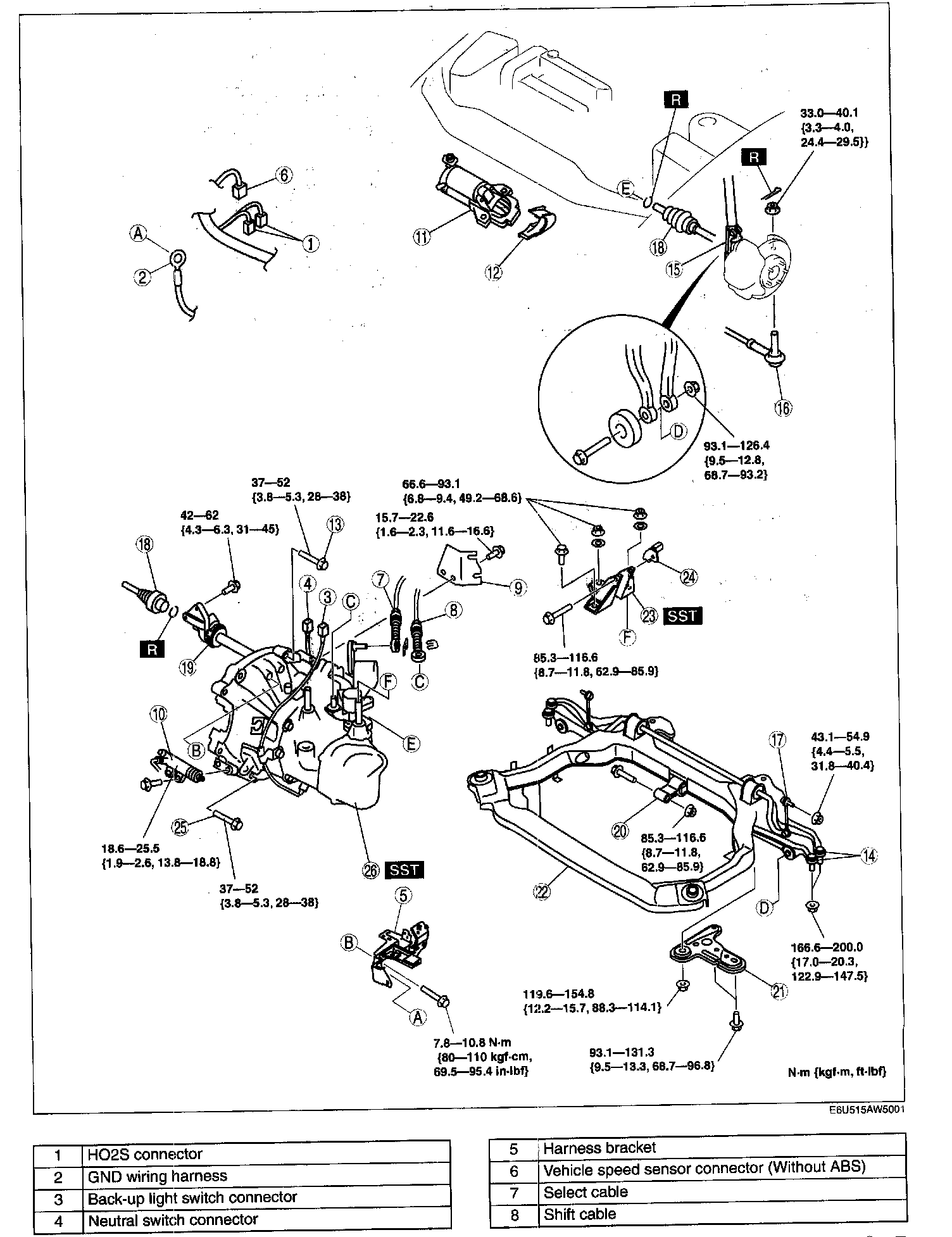 E: 85.3 - 116.6 Nm (8.7 - 11.8 kgf.m, 62.9 - 85.9 ft. lbs.)