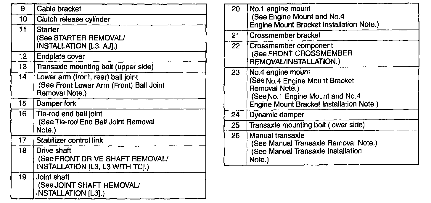 Manual Transaxle Removal Note
