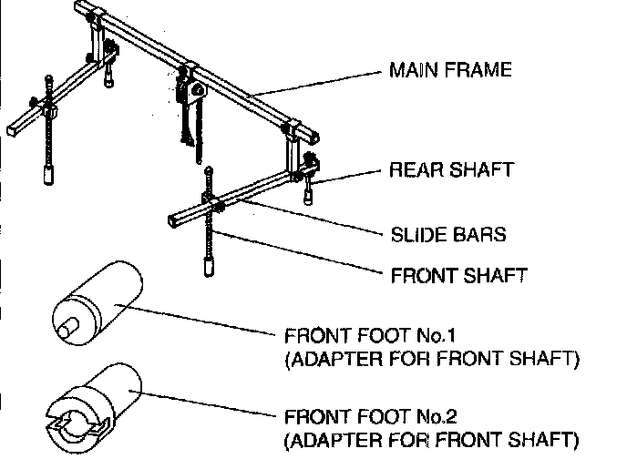 3) Install the left/right front shaft of the SST with front foot No. 2 to the bolt as shown in the figure.