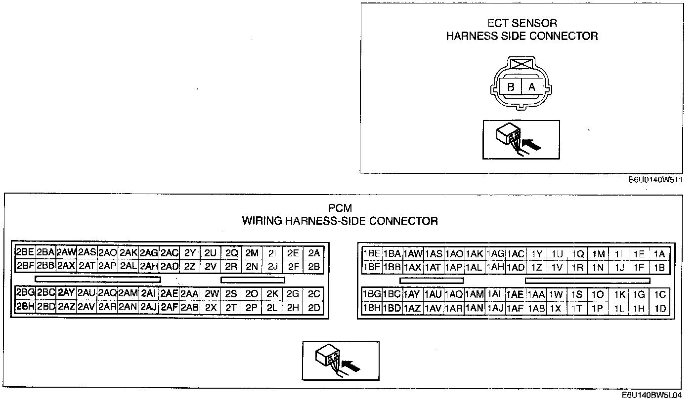 - ECT sensor terminal B and PCM terminal 2AJ